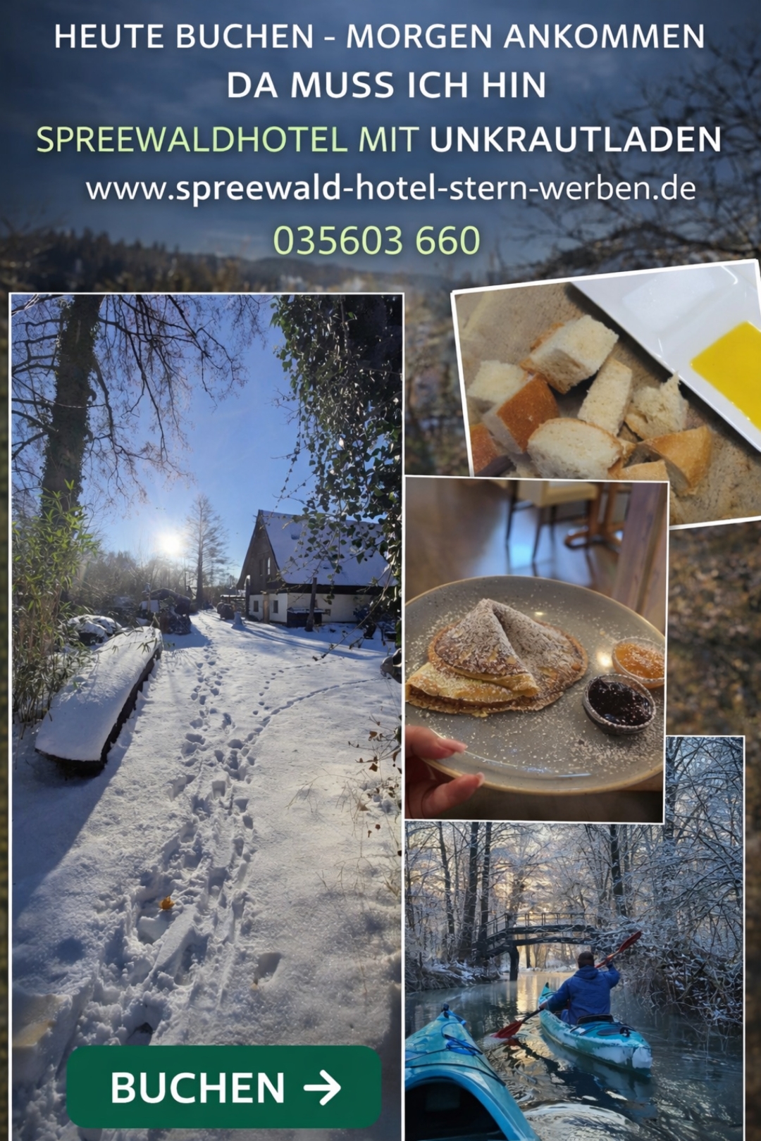 Wenn der Spreewald leise wird, beginnt Ihr Wohlfühlmoment. Einatmen. Aufwärmen. Genießen. Winterurlaub im Spreewaldhotel mit Unkrautladen 🌿 Kräuter 🔥 Wärme 🏡 Zuhausegefühl 🌐 www.unkrautladen-im-spreewaldhotel.de
