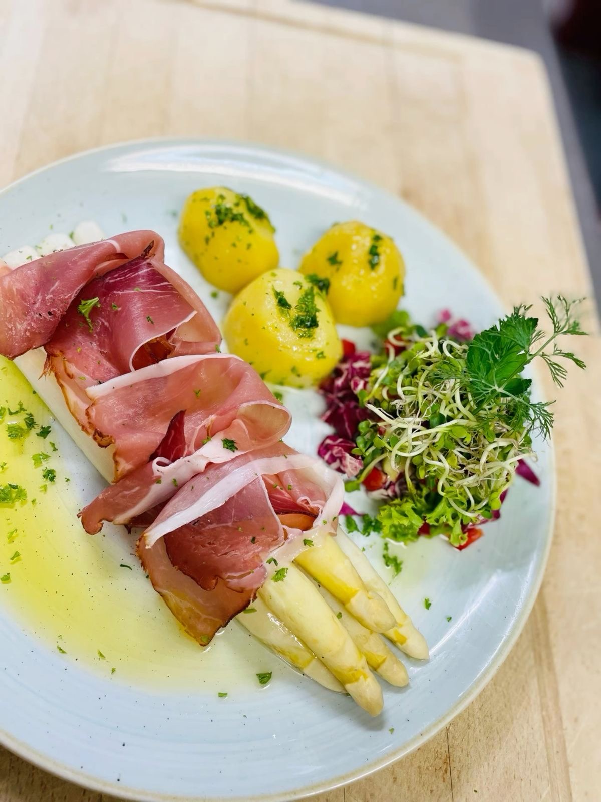 Die Spargelsaison ist eröffnet! Im Kräuterhotel „Zum Stern“ im Gemüsedorf Werben genießen Sie täglich frisch geernteten Spargel vom Spargelbauer Ricken – ob mit Bauernschinken, zu Schnitzel oder Lachsfilet.